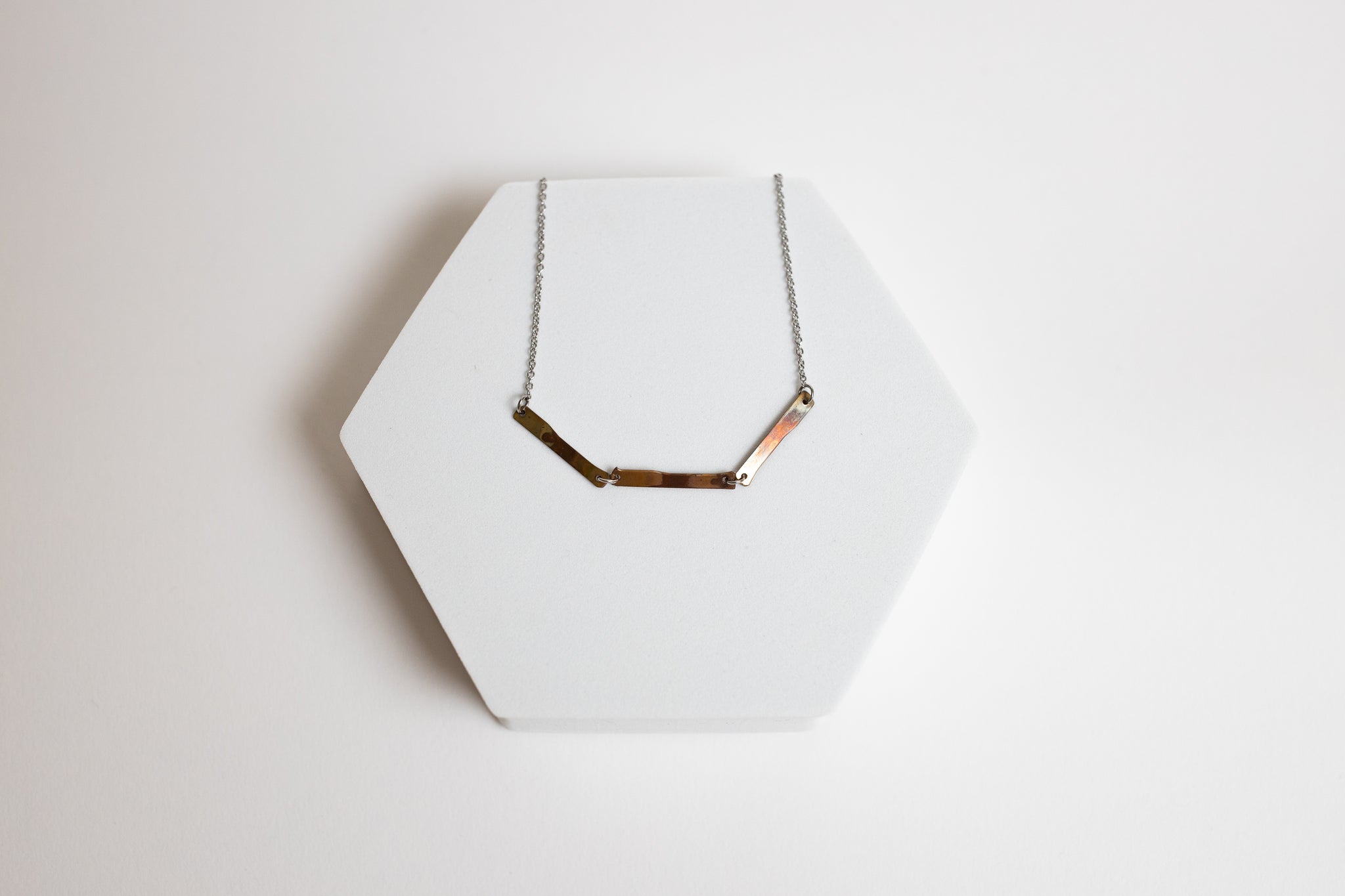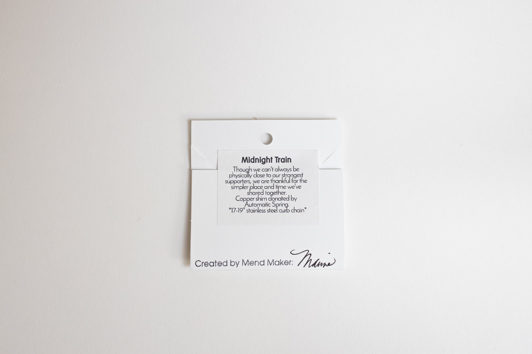 Copper and stainless steel flow together beautifully in this necklace, and feature a colorful fire patina focal point. Minimalist style for maximum effect. Matching bracelet available here.