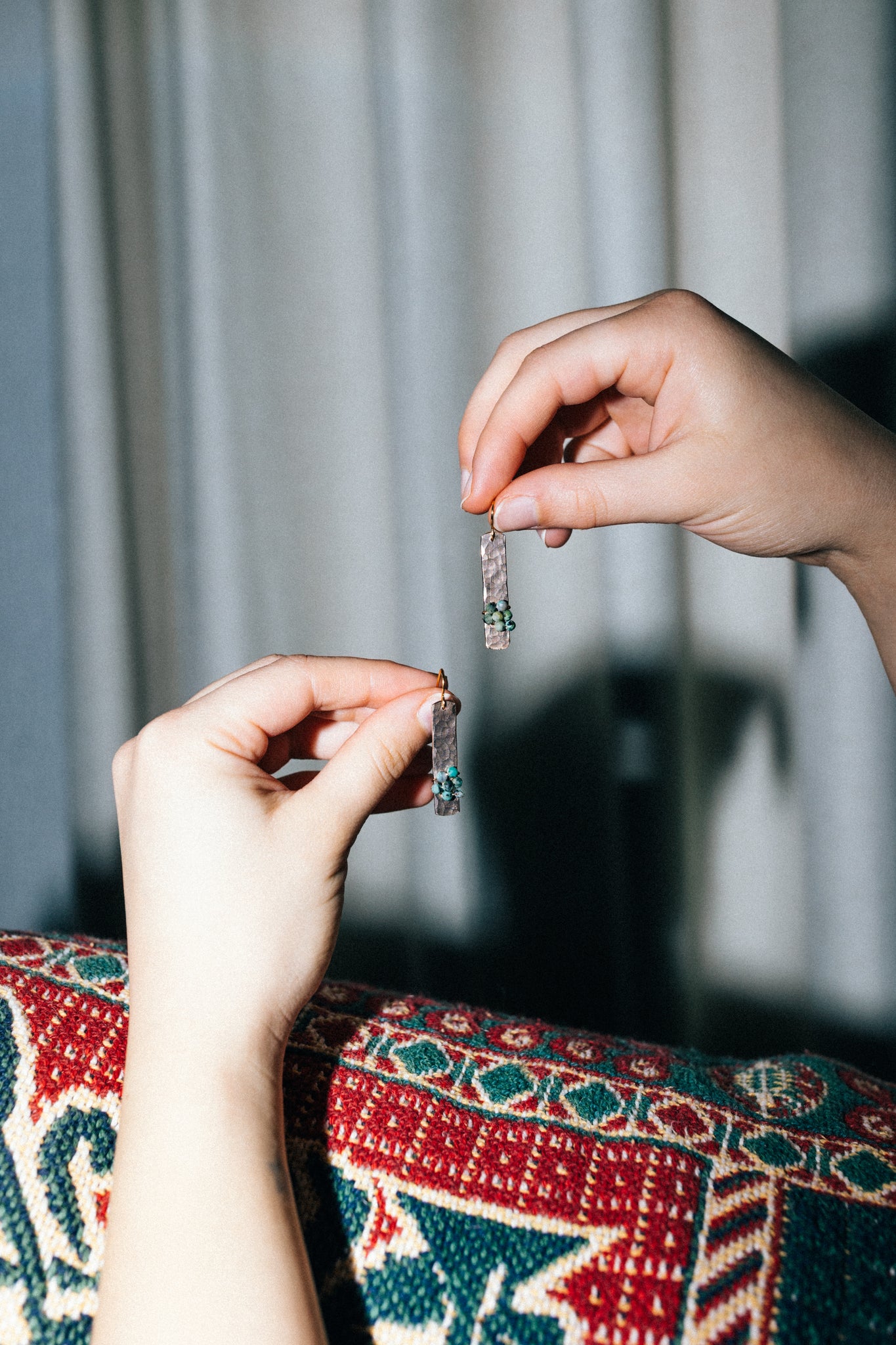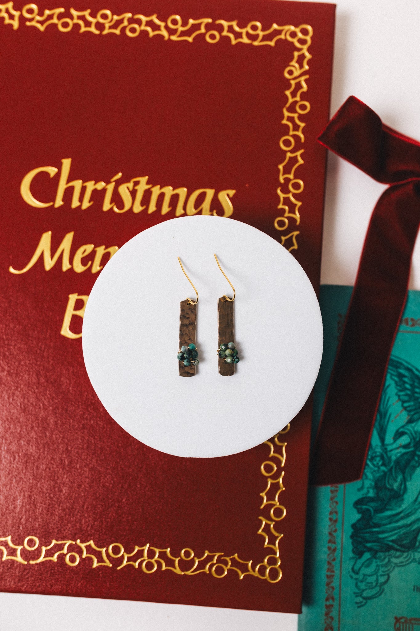 You'll love wearing these elegant copper earrings with a unique boho twist. We've paired African Jasper beads to the textured copper brake line, creating the most beautiful cluster of color! Natural faceted beads hold earthy shades of greens and browns in a speckled pattern.